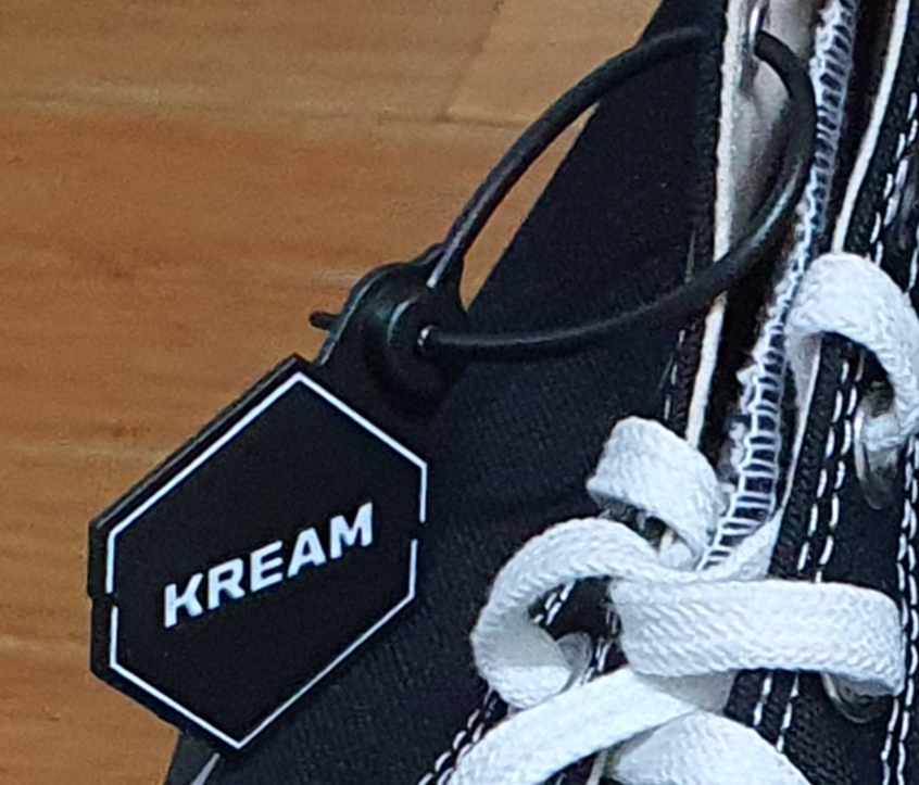 구매를 한지 약 3-4일 만에 도착하였고 그림과 같이 KREAM 플라스틱 택같은게 붙어서 왔는데