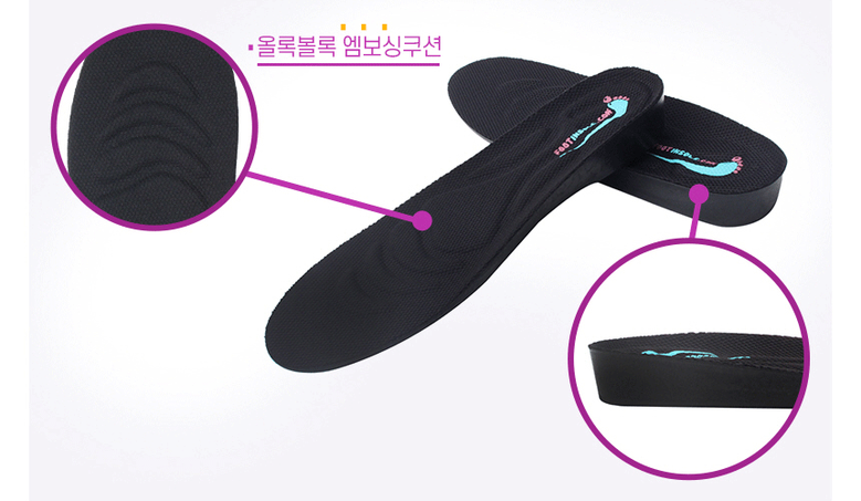 러닝화는 인솔 안쪽에 스니커즈나 컨버스는 인솔 위에 깔아주면 이것만큼 편한 깔창은 없다. (2CM가량 업됨)
