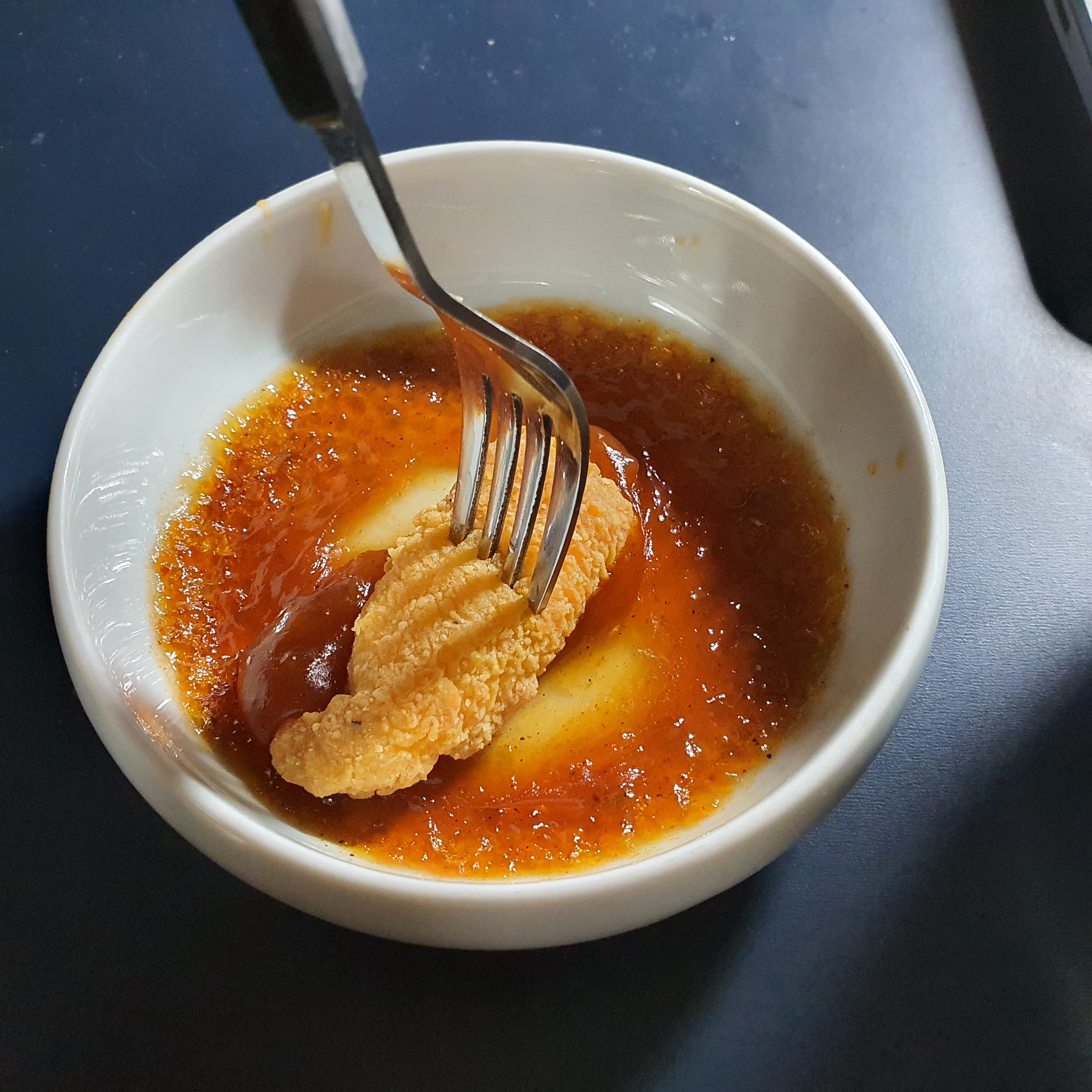 아까전 고열로 해동시킨 케이준 칠리소스를 찍어 먹으면 누구나 좋아하는 너도 나도 아는 바로 그 맛이 나온다.