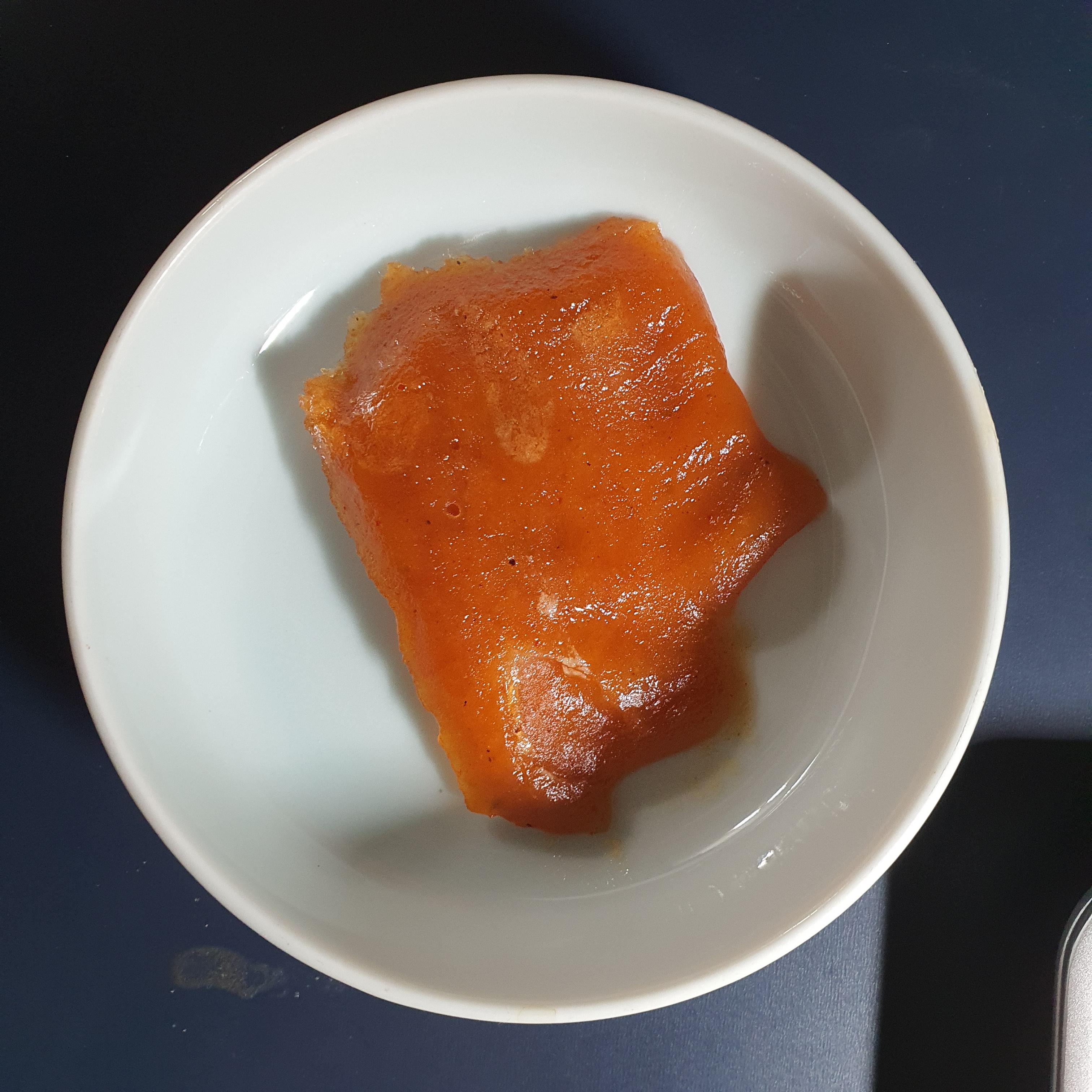 냉동되어 있는 상태의 소스를 그대로 접시에 부어 보았다. 연어 생각이난다.