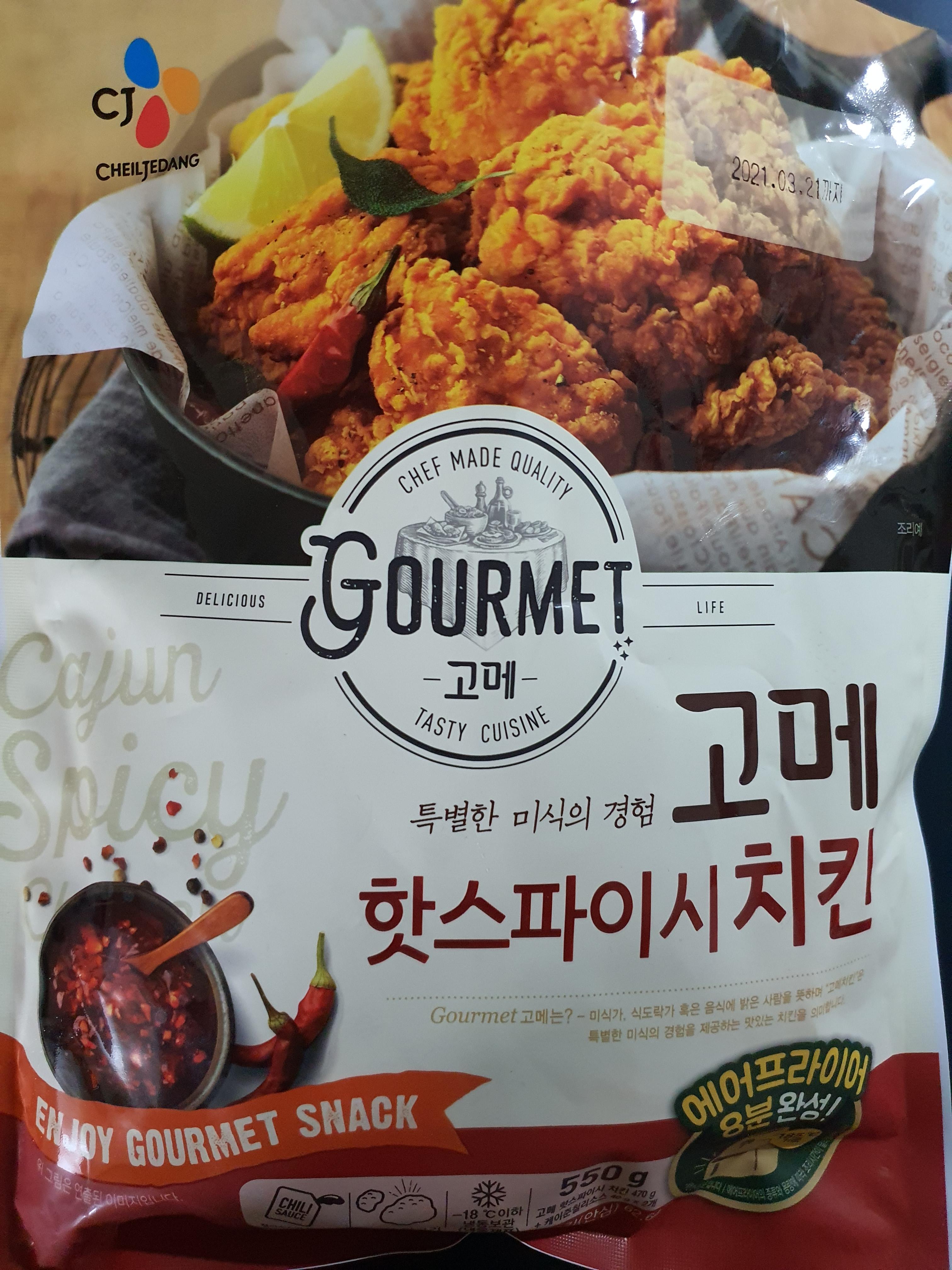 지난번과 마찬가지로 냉동치킨류이며 CJ고메 브랜드의 '핫 스파이시 치킨'이다.