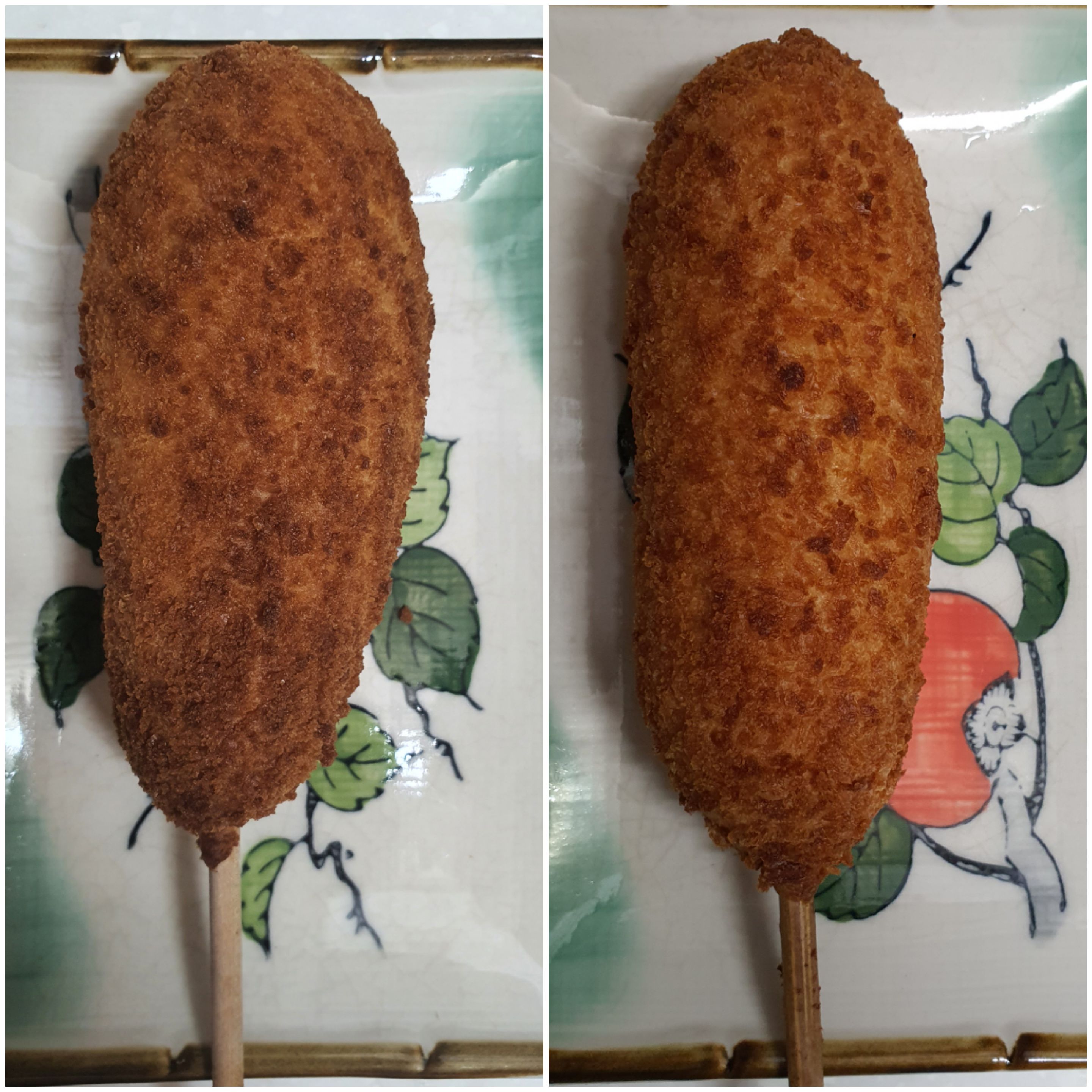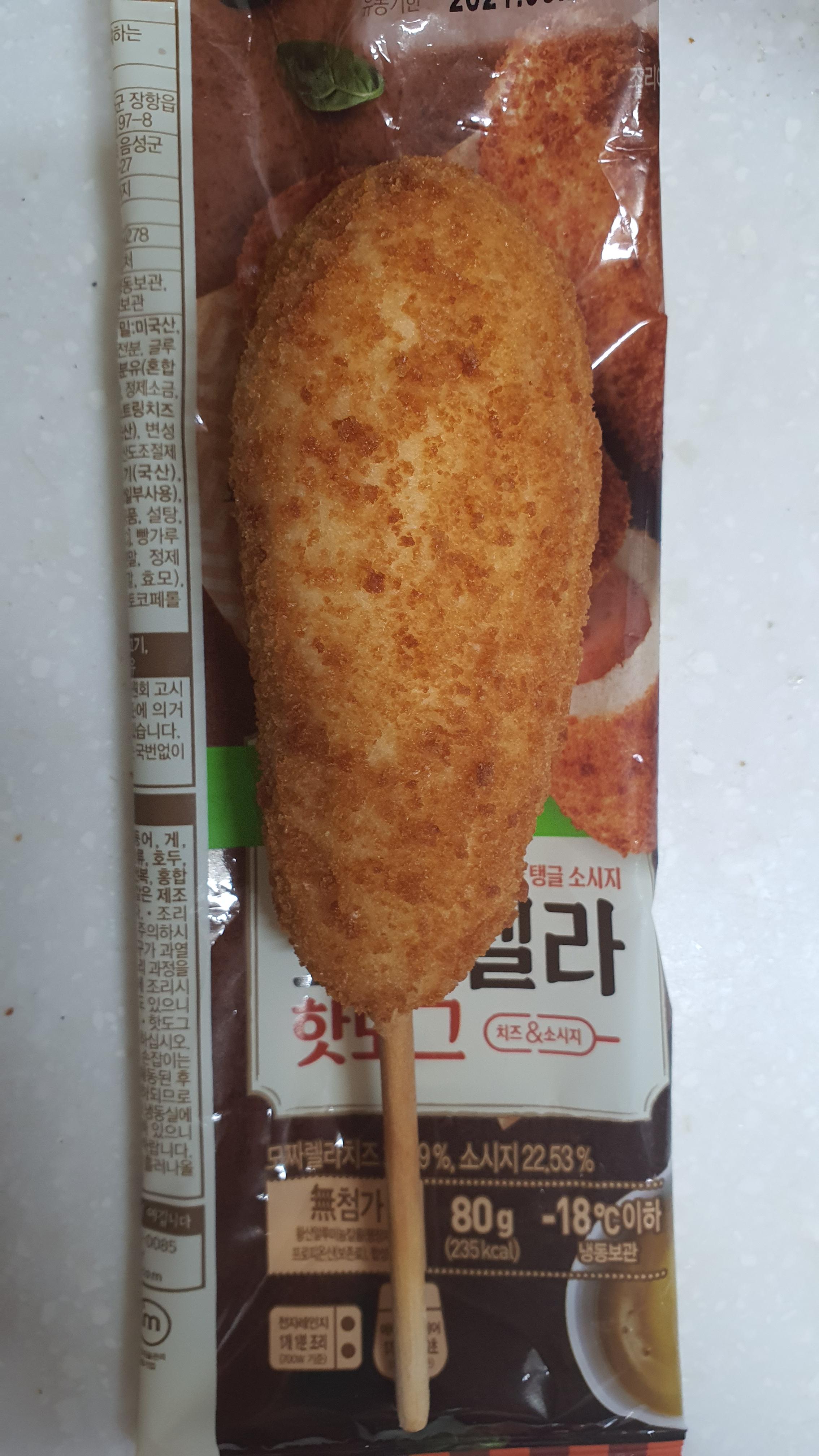 이것은 고메 치즈 크리스피 핫도그의 조리 후 모습이다. 차이가 느껴지는가?? 모르겠다면 비교샷을 확인하자