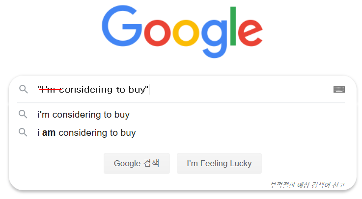 예를 들어 "I'm cosidering to buy"를 검색한다면