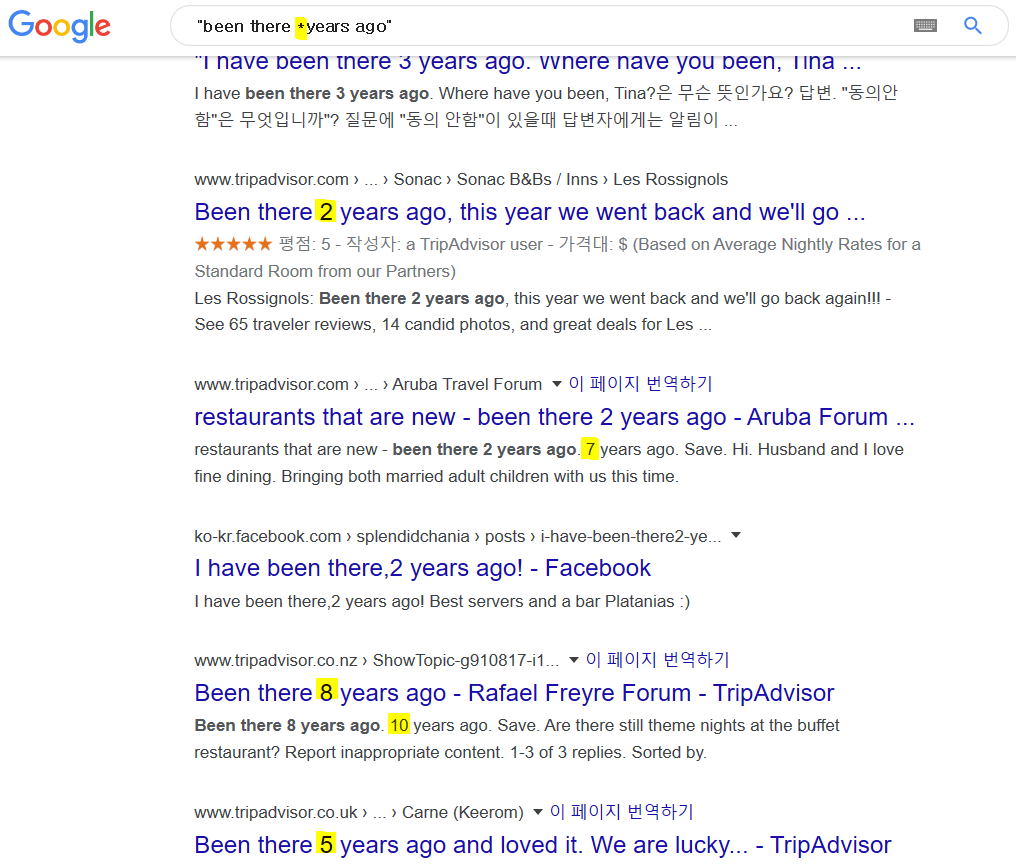 만약에 *표시 없이 숫자만 지운 years ago를 검색하게 되면