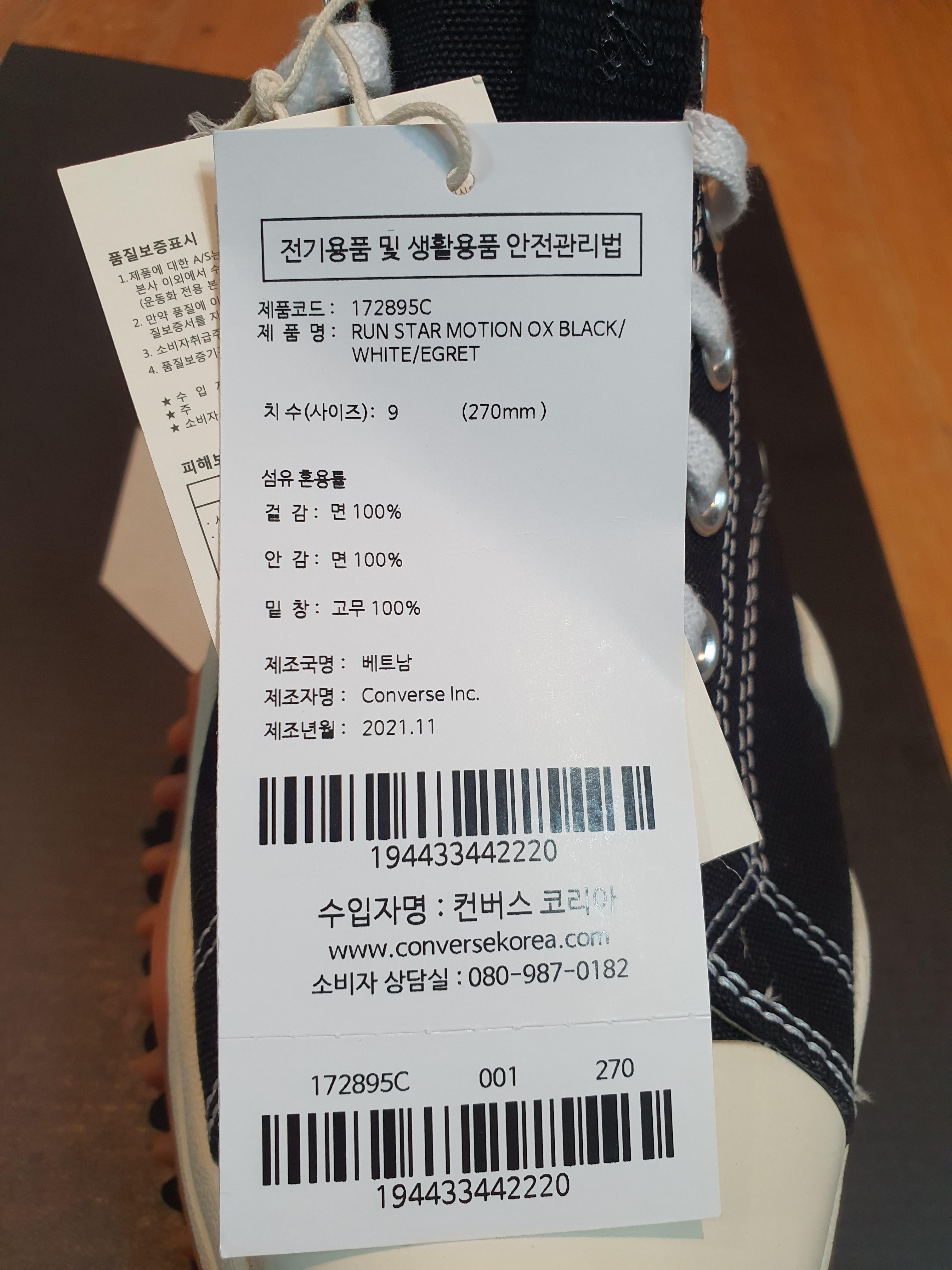 ※ 컨버스 런스타 모션 OX 로우탑 모델은