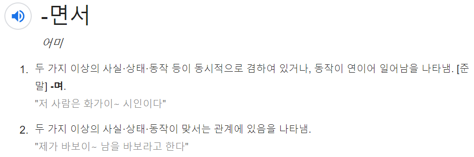 1. 하면서도- 어떤 행동이나 현상과 동시에(At the same time) 일어나는 상황을 말할 때 쓰임